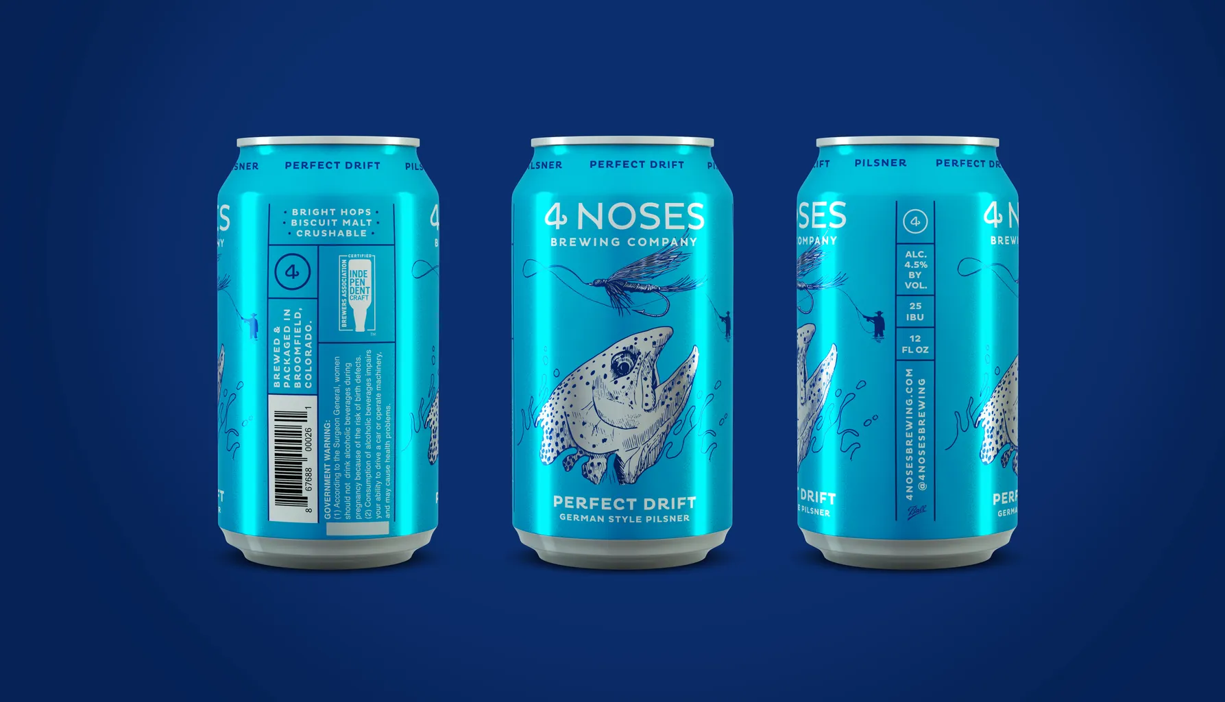 Afin d'y parvenir, 4 Noses a recruté la société de design de Denver StudioMast qui a ensuite créé un emballage coloré et audacieux tout en utilisant l'art dessiné à la main par le copropriétaire et frère du brasseur en chef David Bibliowicz, devenu synonyme de la ligne de canettes 4 Noses.
