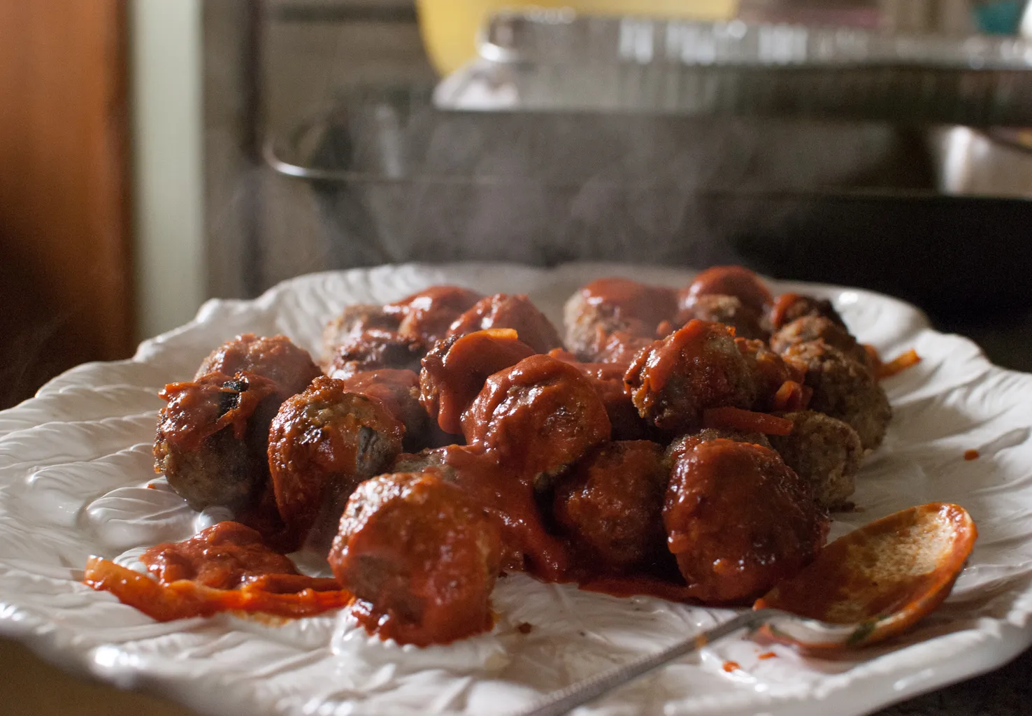 Les boulettes de viande copieuses et la sauce tomate maison gagnent en profondeur avec une boisson de bière brune. La Stout - avec son caractère houblonné et rond en bouche et sa structure de malt prononcée - est un excellent outil à avoir sous la main pour apprêter un plat, à la fois en tempérant l'acidité d'une sauce tomate brillante et en équilibrant la jutosité savoureuse d'un bon bœuf haché. J'aime cuisiner avec une stout sèche de style irlandais aux notes d'olive noire comme la Boston Irish Stout de Harpoon Brewery. Ce n'est pas le moment de déguster des stouts impériales à indice d'octane élevé ou tout ce qui est décrit comme du « café », du « chocolat » ou des « flocons d'avoine ». Conservez ces stouts pour la cuisson.